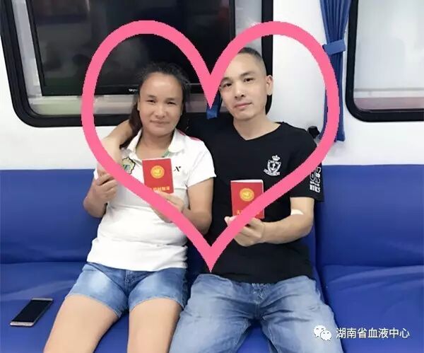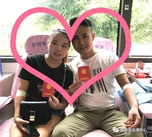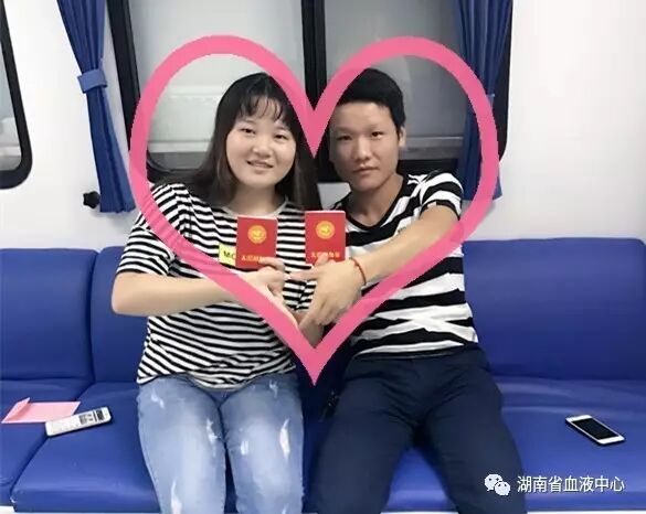 七夕当天,在浏阳献血屋参加无偿献血的情侣汤华兵、杨佳莹。他们也用这样特别的方式,向大家传递着他们的爱情与他们的爱心。
